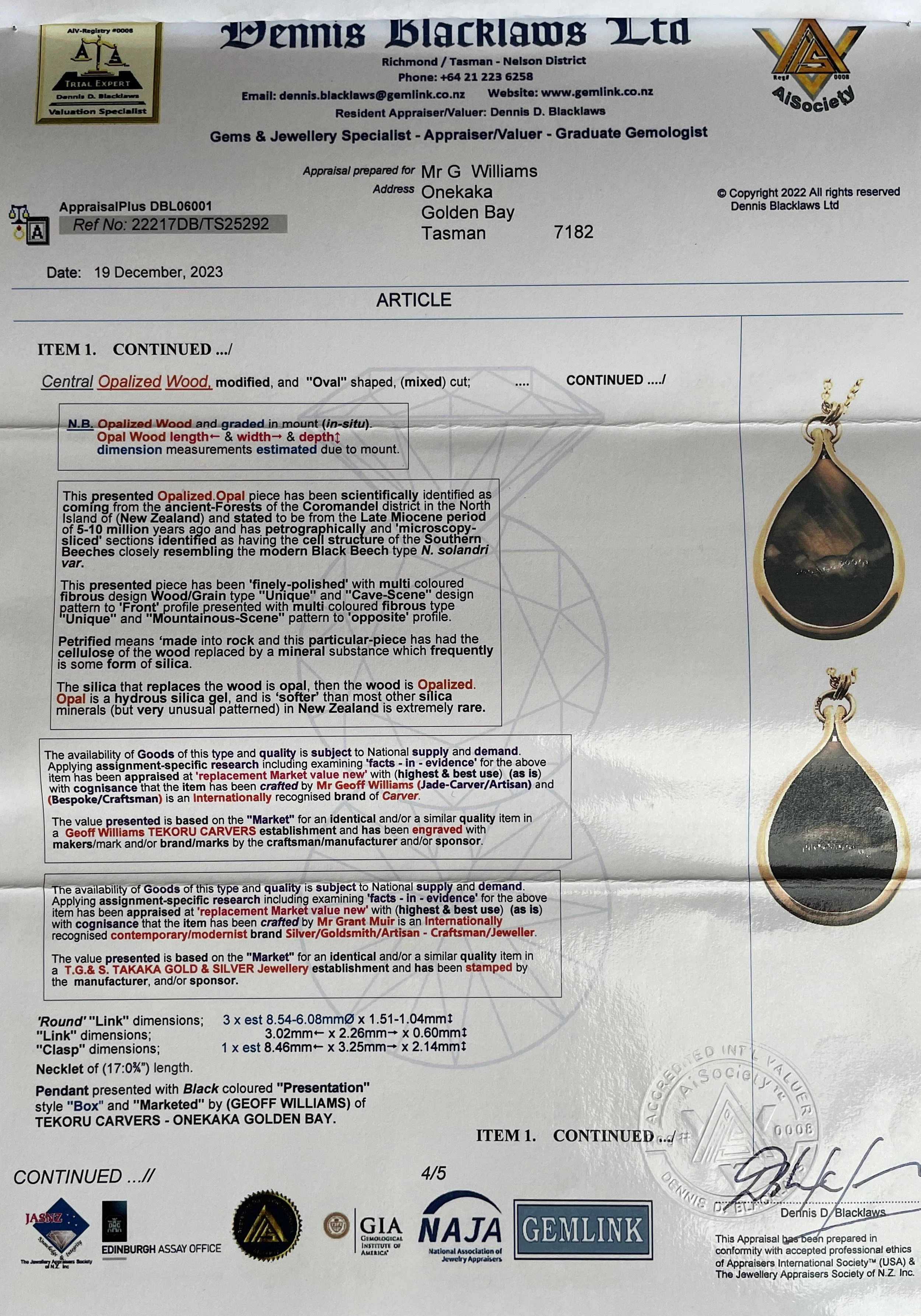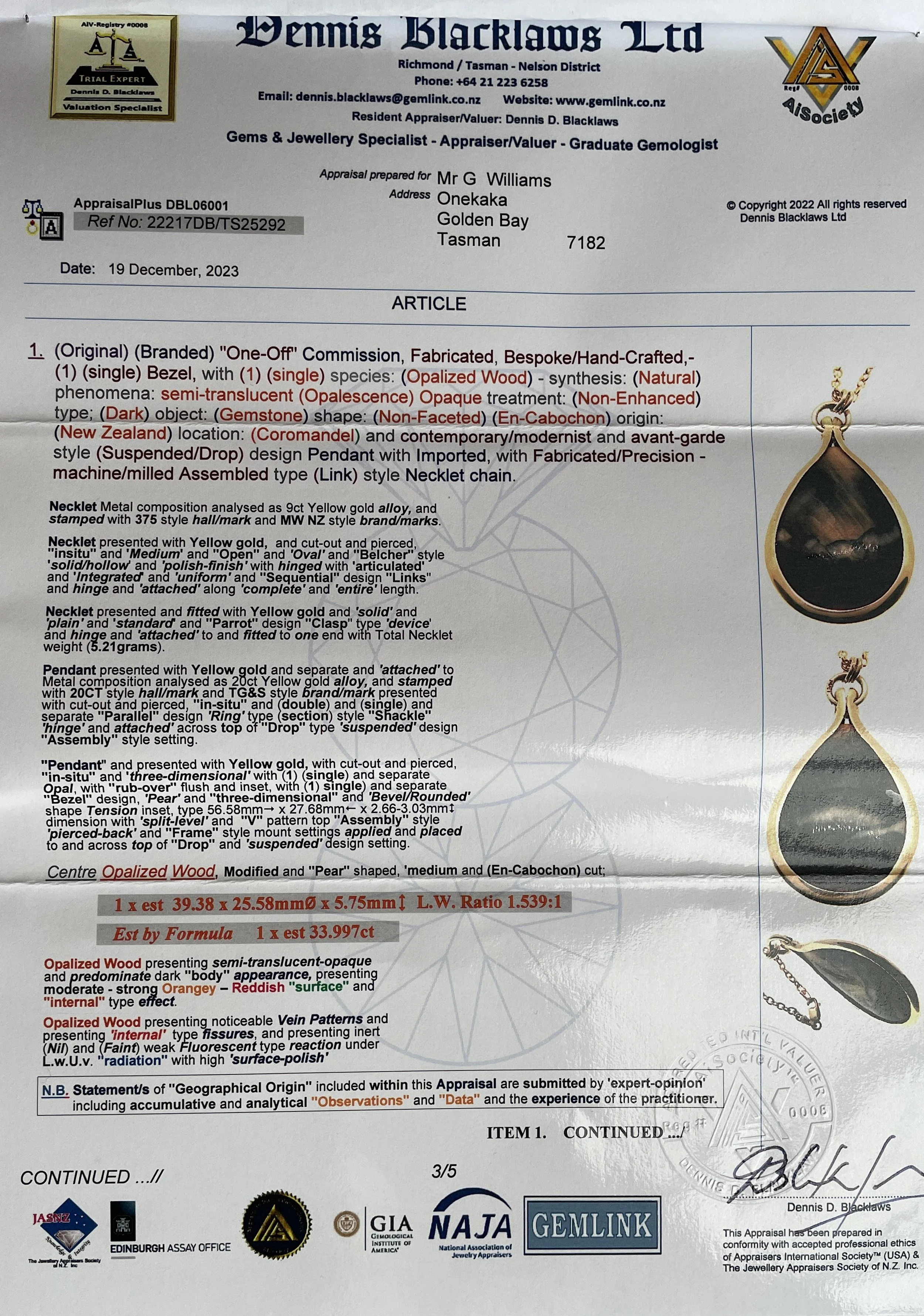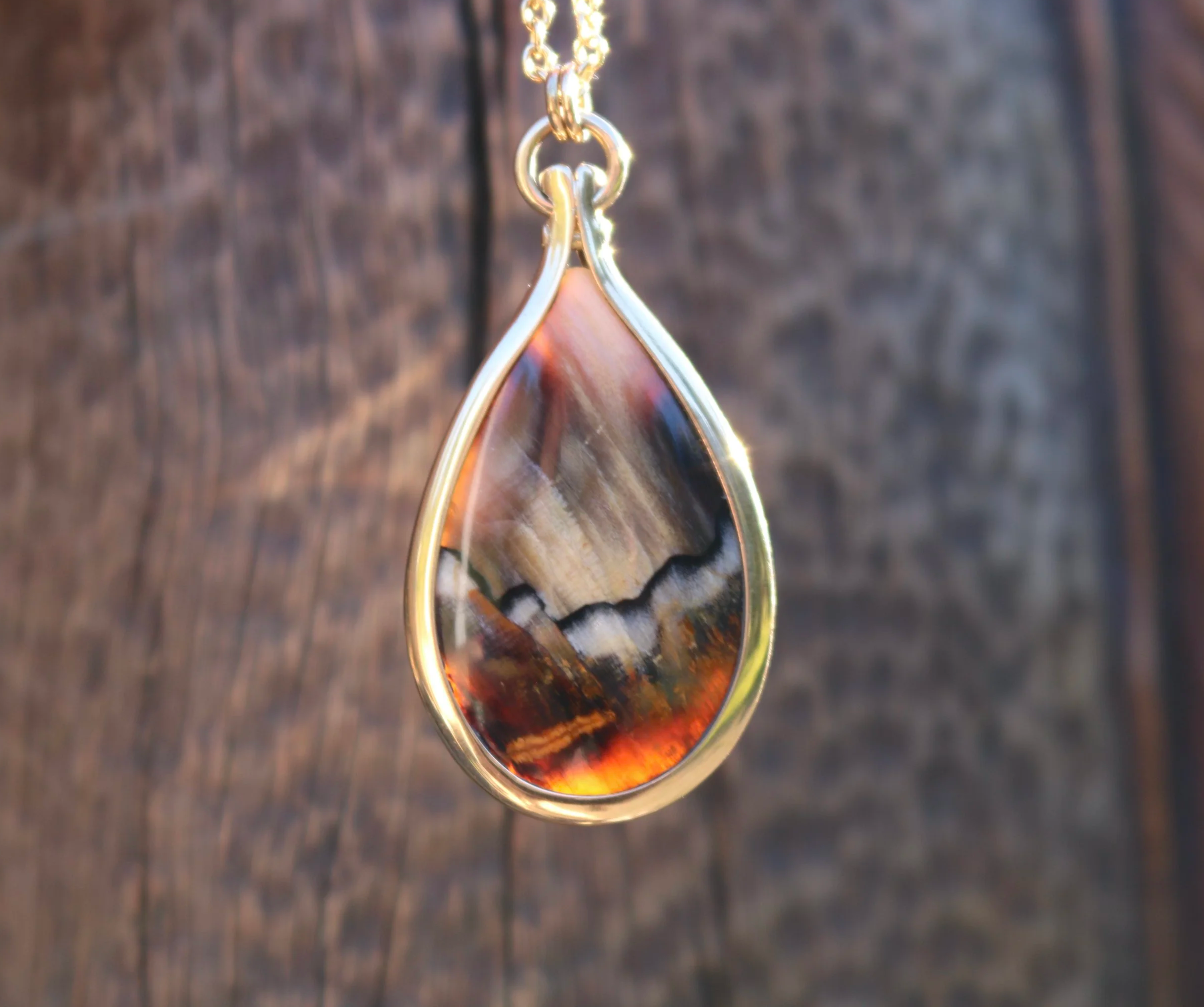Categories: All Sculptures Carvings Drop pendants Ear wear Other stone Paua & Mother of Pearl Opalised Wood All / Opalised Wood 20 carat Gold Pendant with Opalised Wood NZ$6,500.00